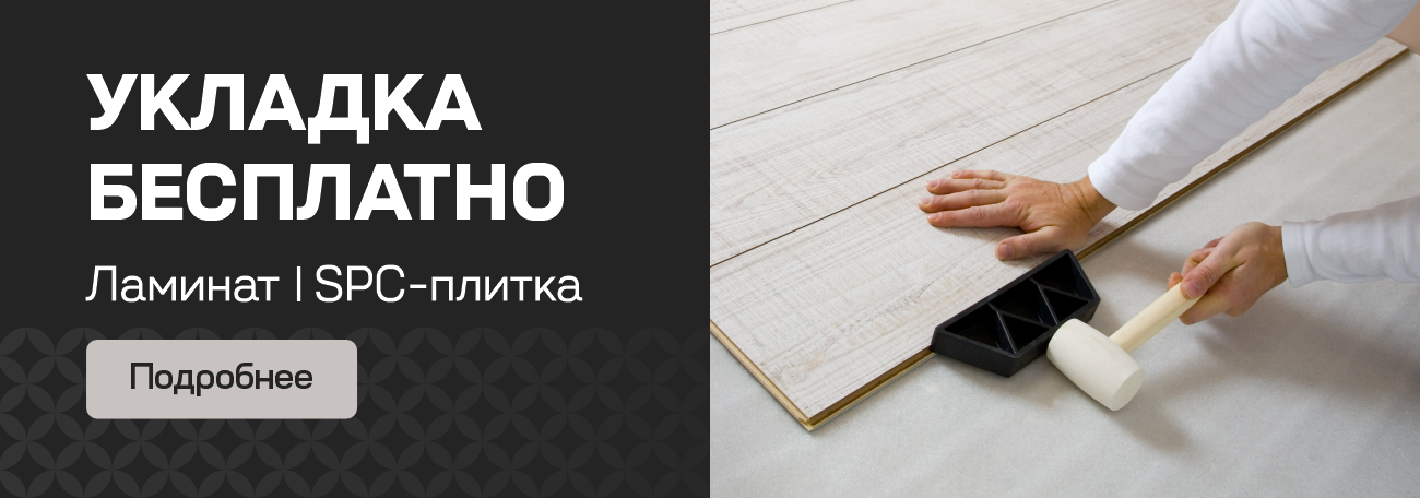 С 17 ноября по 31 декабря 2025 года при покупке от 10 м² ламината или SPC покрытий — профессиональная укладка пола в подарок.